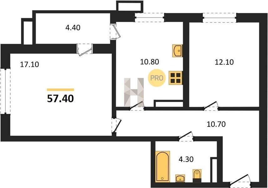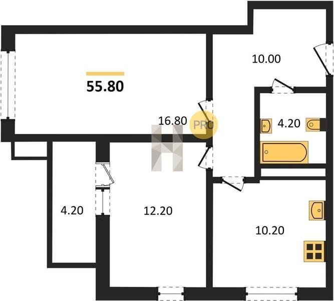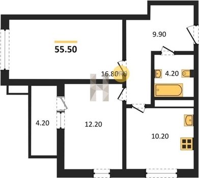 Площадь от 55.4 м2