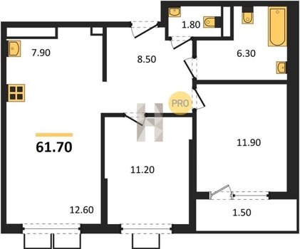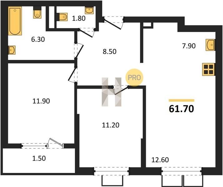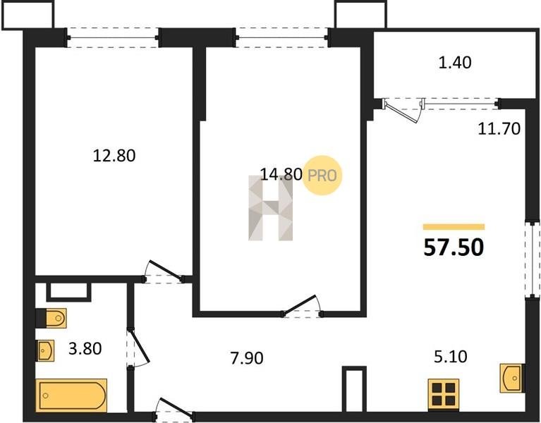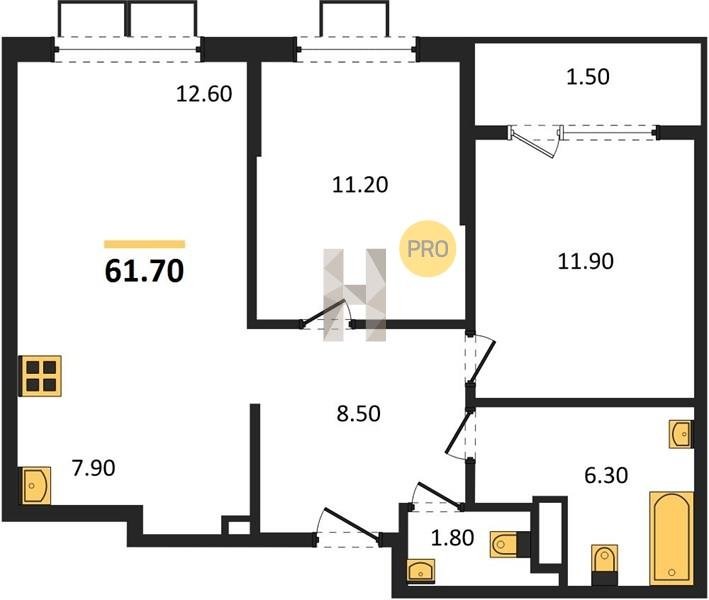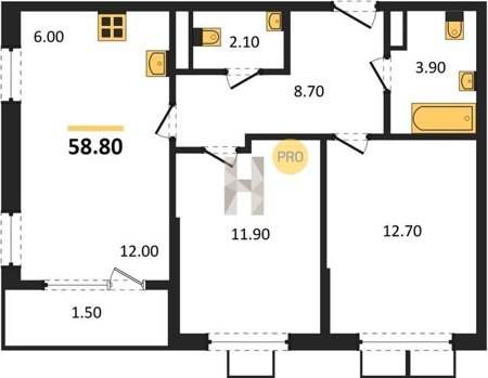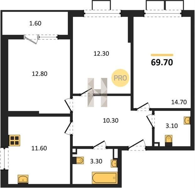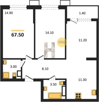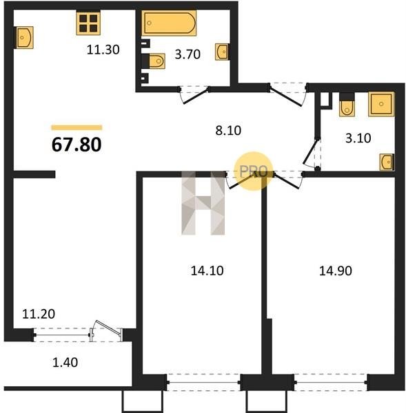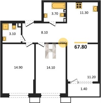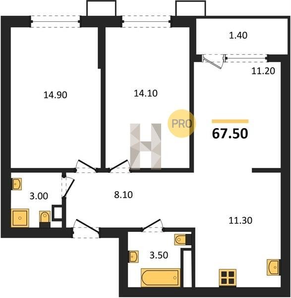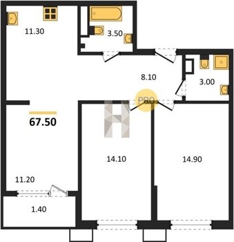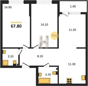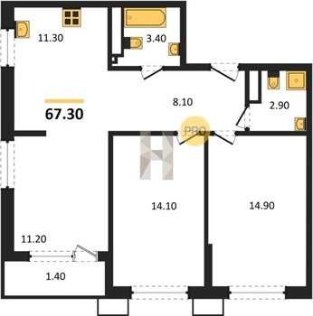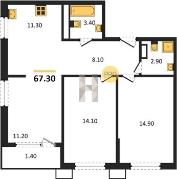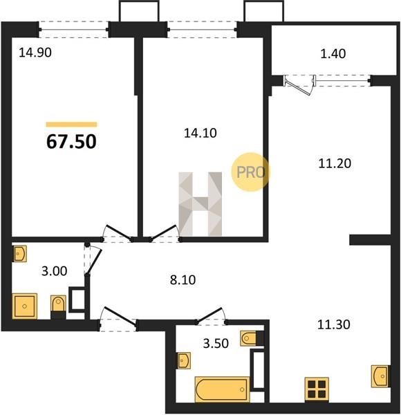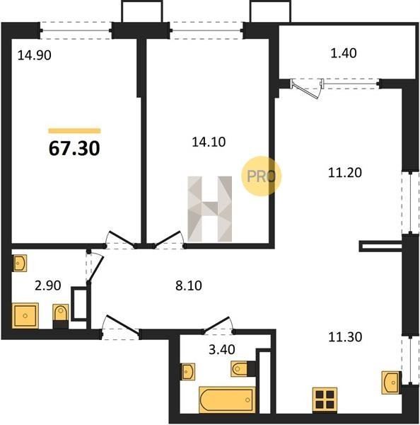 Площадь от 67.3 м2