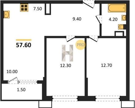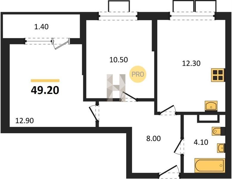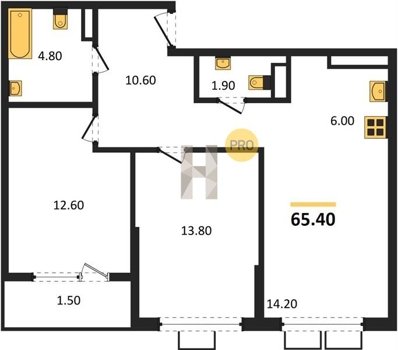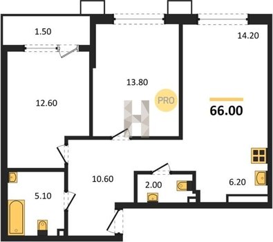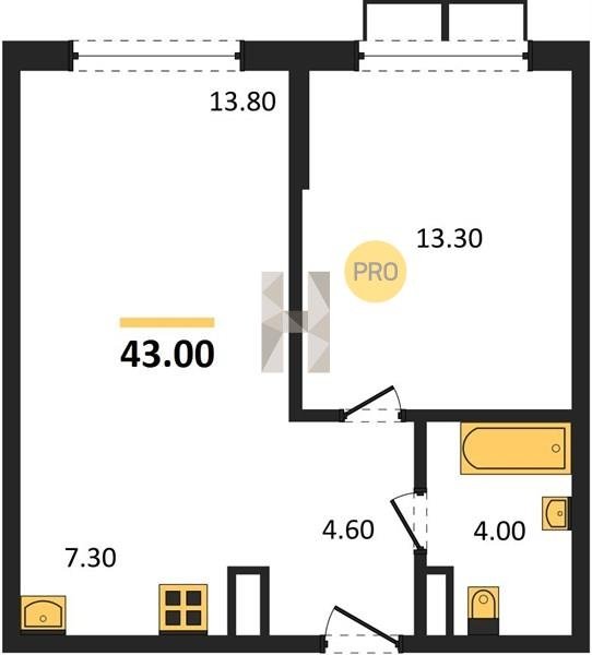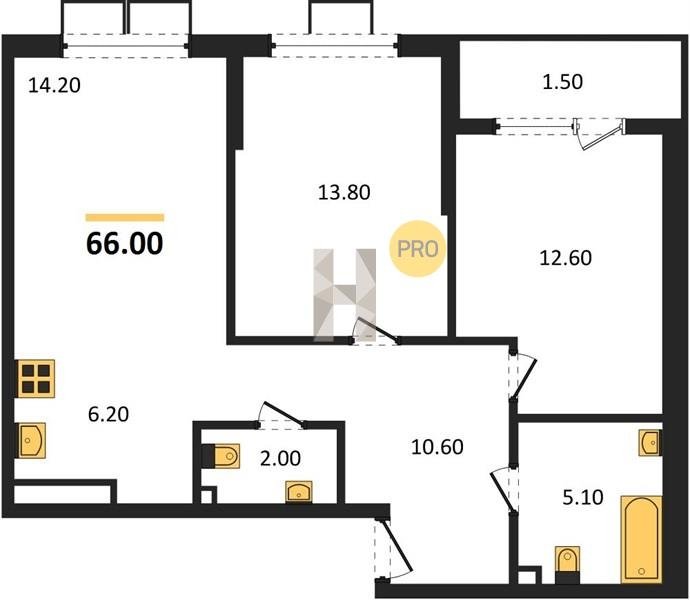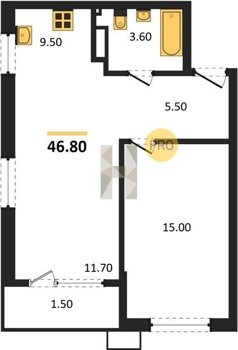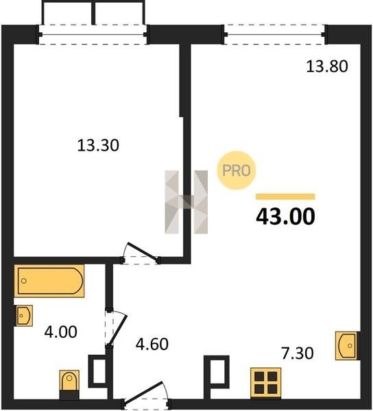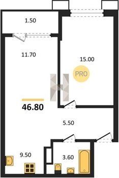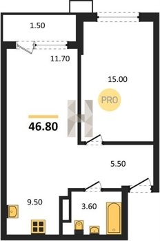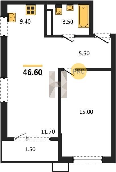Площадь от 46.6 м2