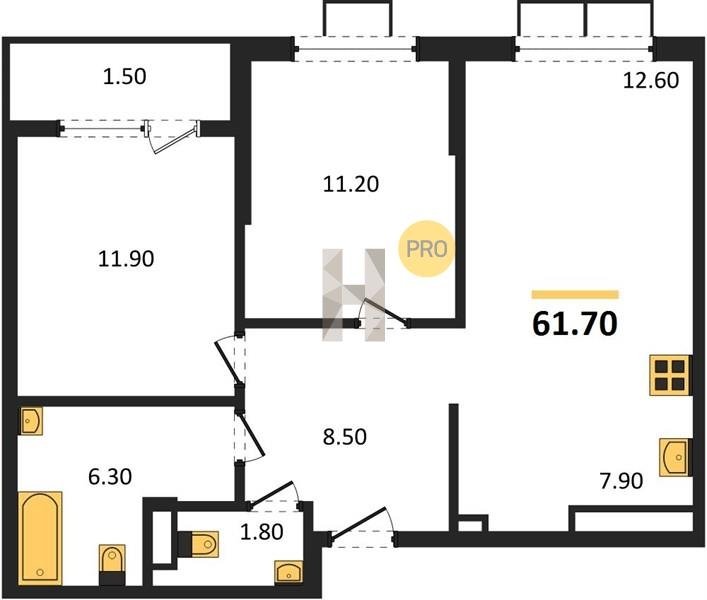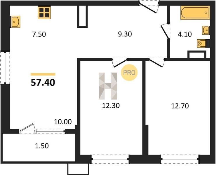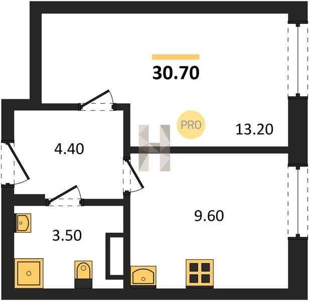 Площадь от 30.7 м2
