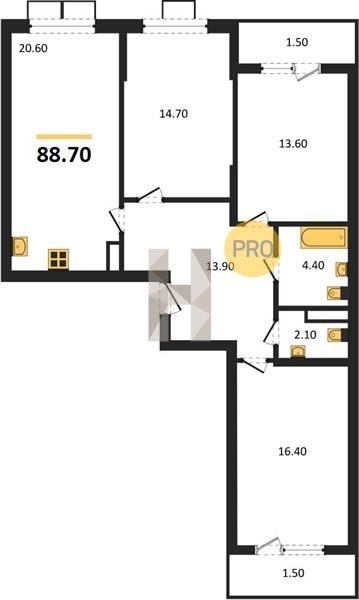 Площадь от 20.9 м2