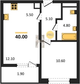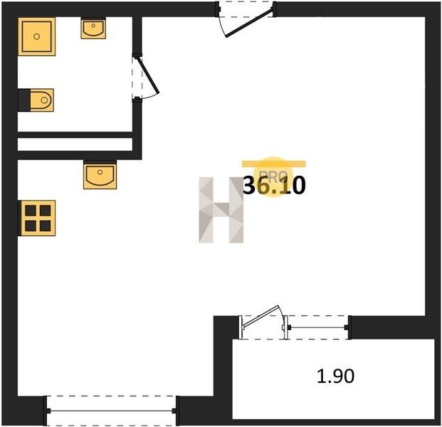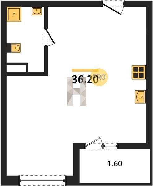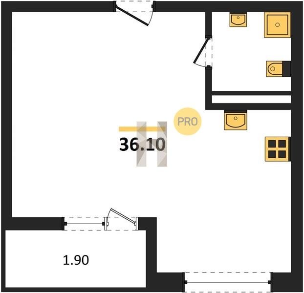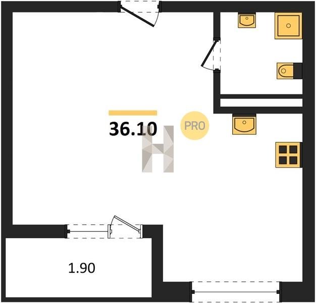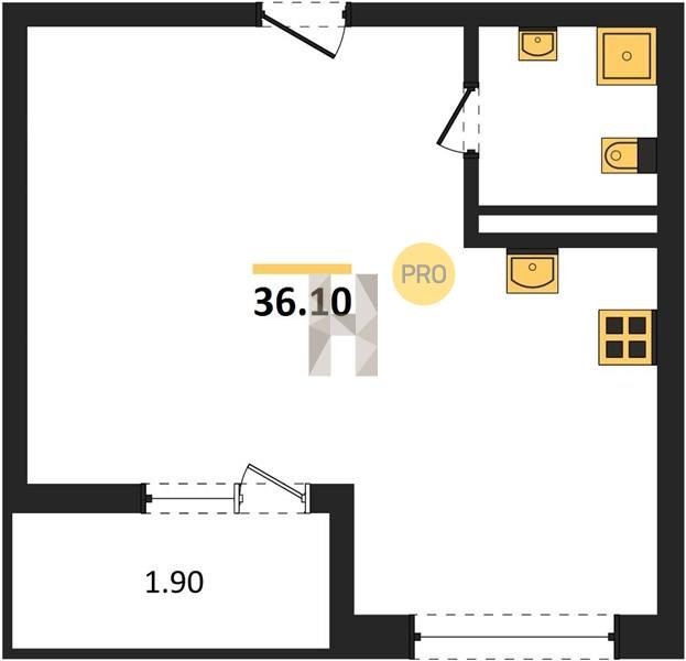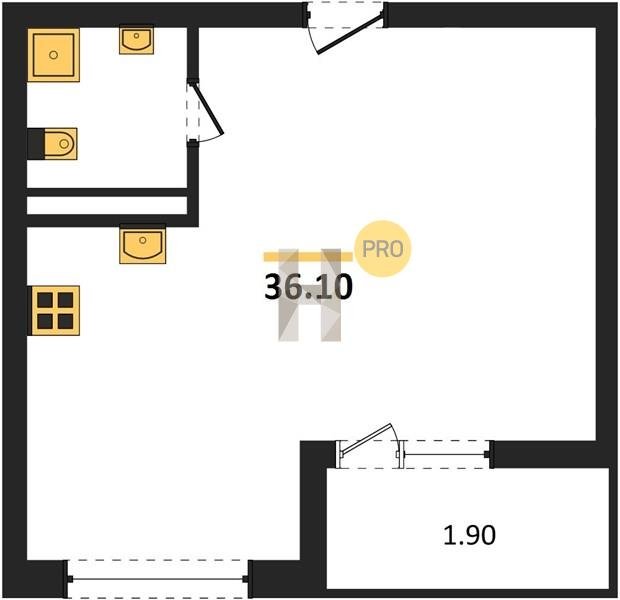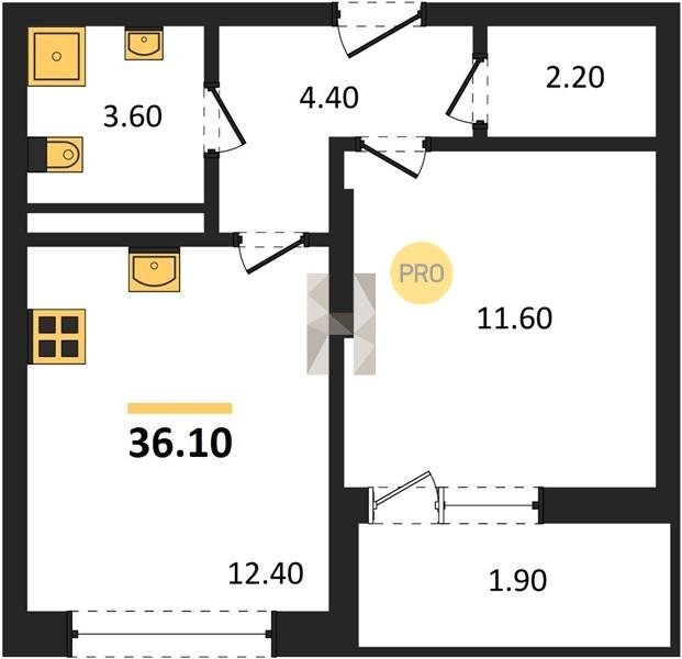 Площадь от 36.1 м2