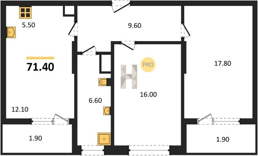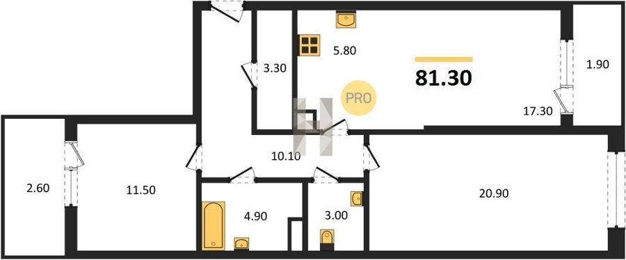 Площадь от 85.2 м2