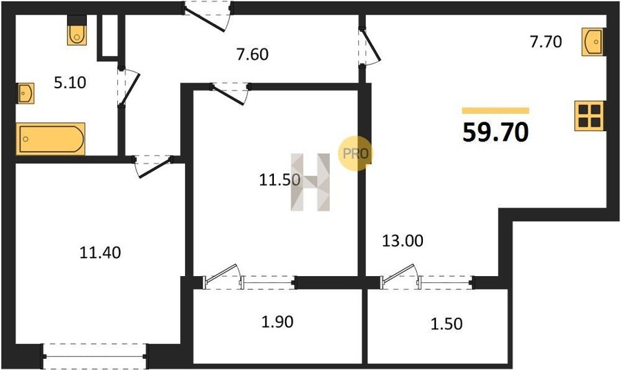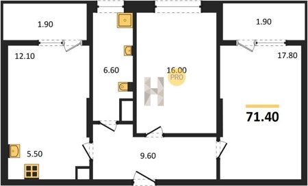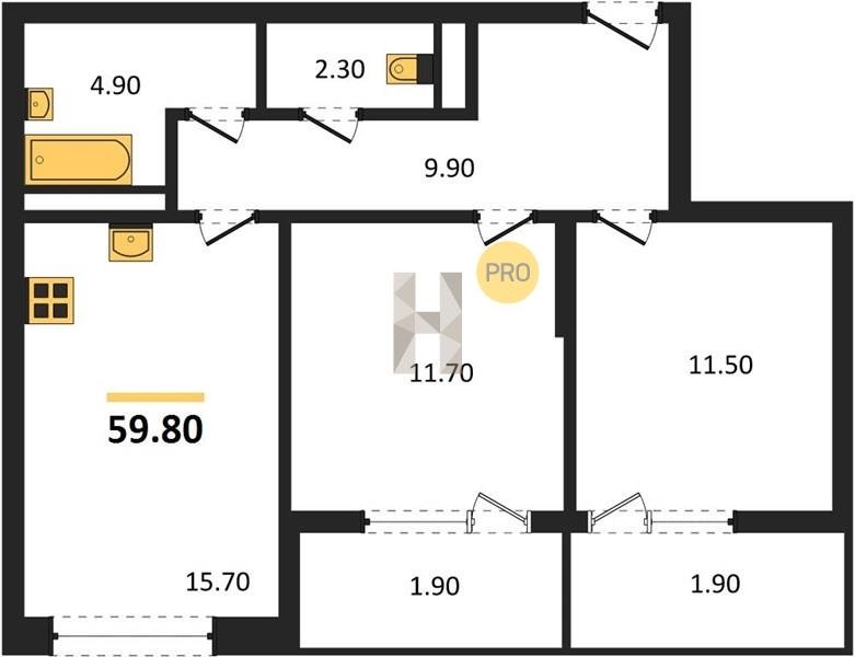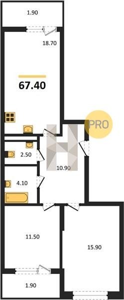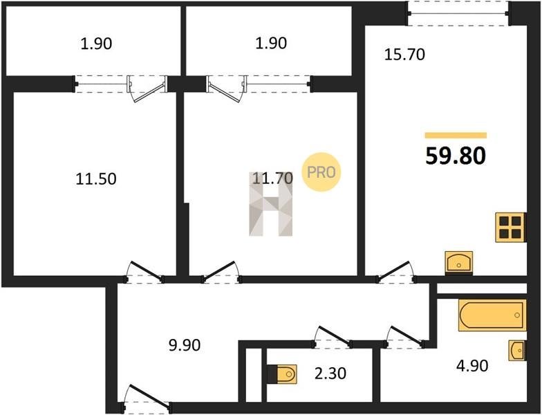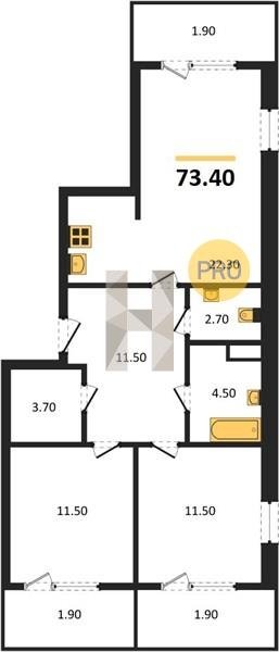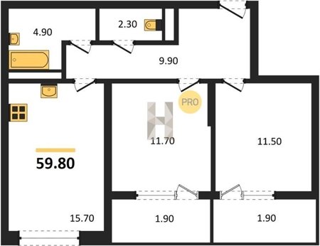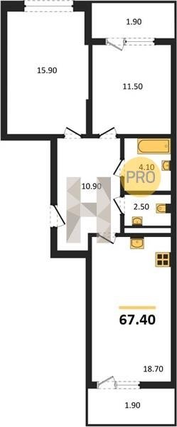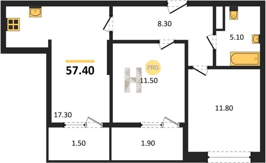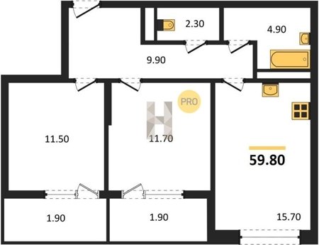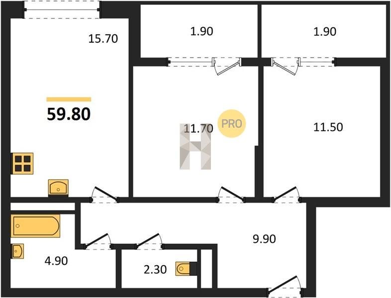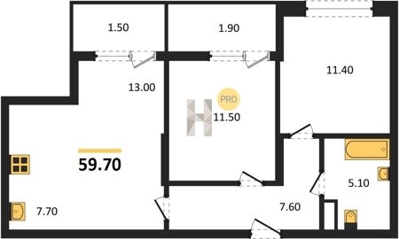 Площадь от 57.4 м2
