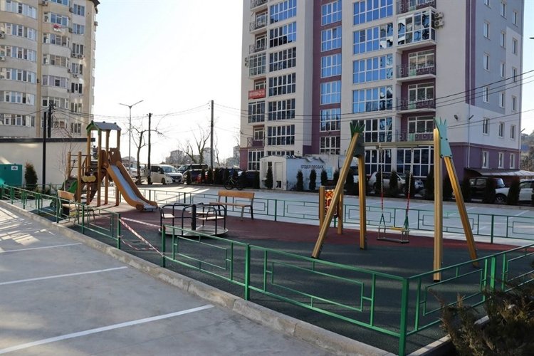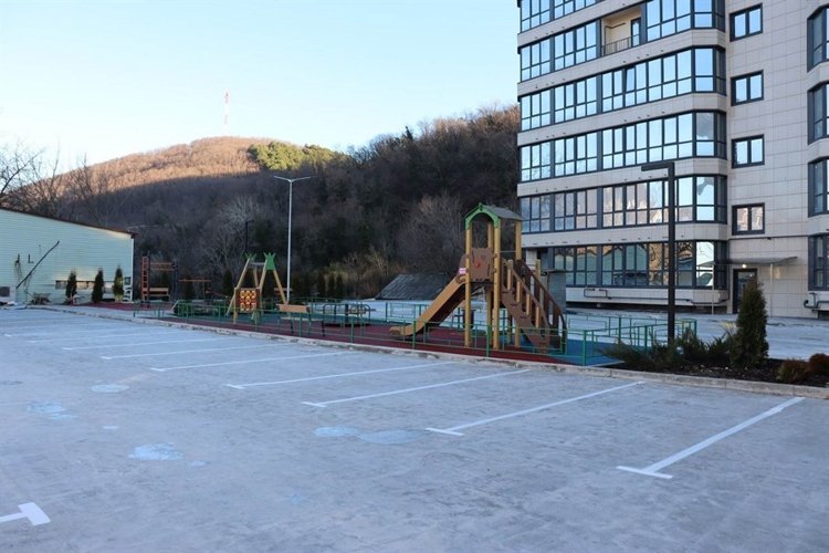 В доме закрытая территория, что обеспечивает безопасность на площадках. Благоустройство огороженной территории включает в себя организацию детской и спортивной площадки, зон отдыха и озеленение. Предусмотрены открытые гостевые парковки.